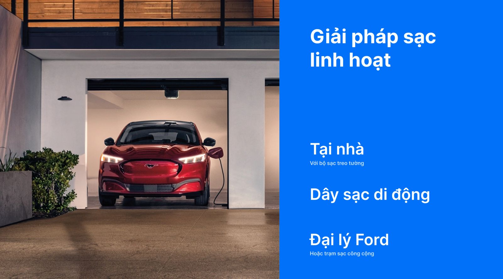 Với sự kết hợp giữa sạc tại nhà – sạc di động – sạc công cộng, Mustang Mach-E mang đến sự tự do tối đa cho người dùng, giúp bạn hoàn toàn yên tâm trải nghiệm trọn vẹn sức mạnh của chiếc SUV điện hiện đại.