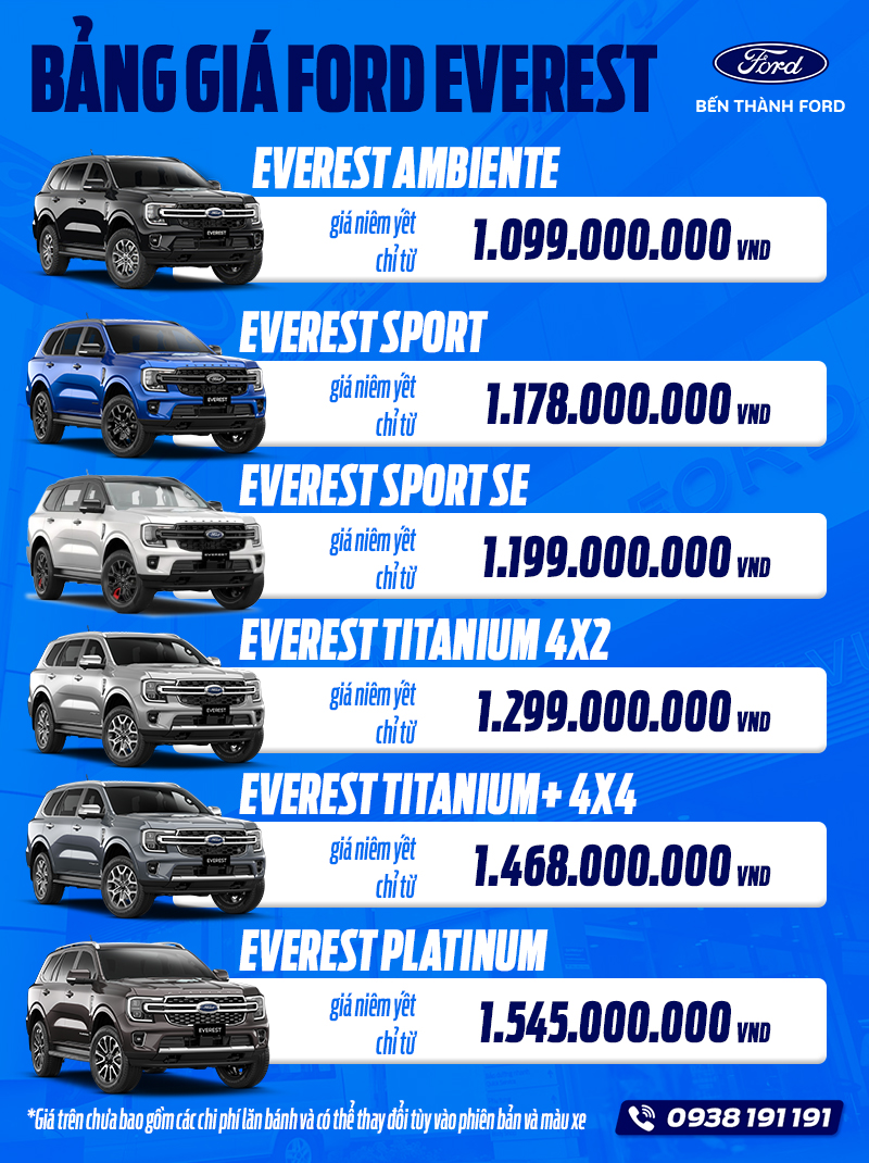 Cập nhật bảng giá xe Ford mới nhất 2025: Ranger, Everest, Territory, Mustang Mach-E... Liên hệ Bến Thành Ford để nhận báo giá chi tiết và đăng ký lái thử!