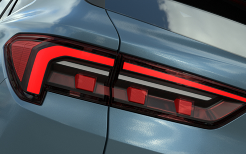 Cụm đèn pha Full-LED được thiết kế mới với tạo dáng ấn tượng và hiện đại. Phần đuôi xe có thiết kế gọn gàng, cụm đèn hậu LED tách biệt hai bên không có dải nối ở giữa, kết hợp đèn phản quang hai bên và cản sau phối đen trang trí hai thanh hình chữ U màu bạc.