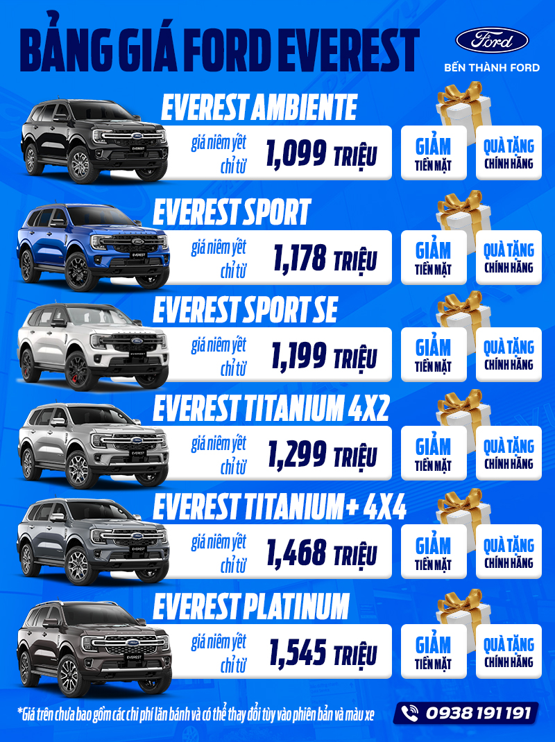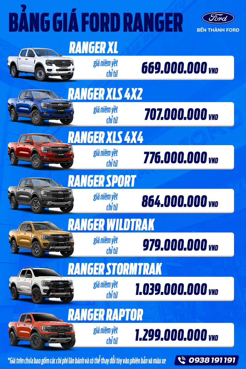 Cập nhật bảng giá xe Ford mới nhất 2025: Ranger, Everest, Territory, Mustang Mach-E... Liên hệ Bến Thành Ford để nhận báo giá chi tiết và đăng ký lái thử!