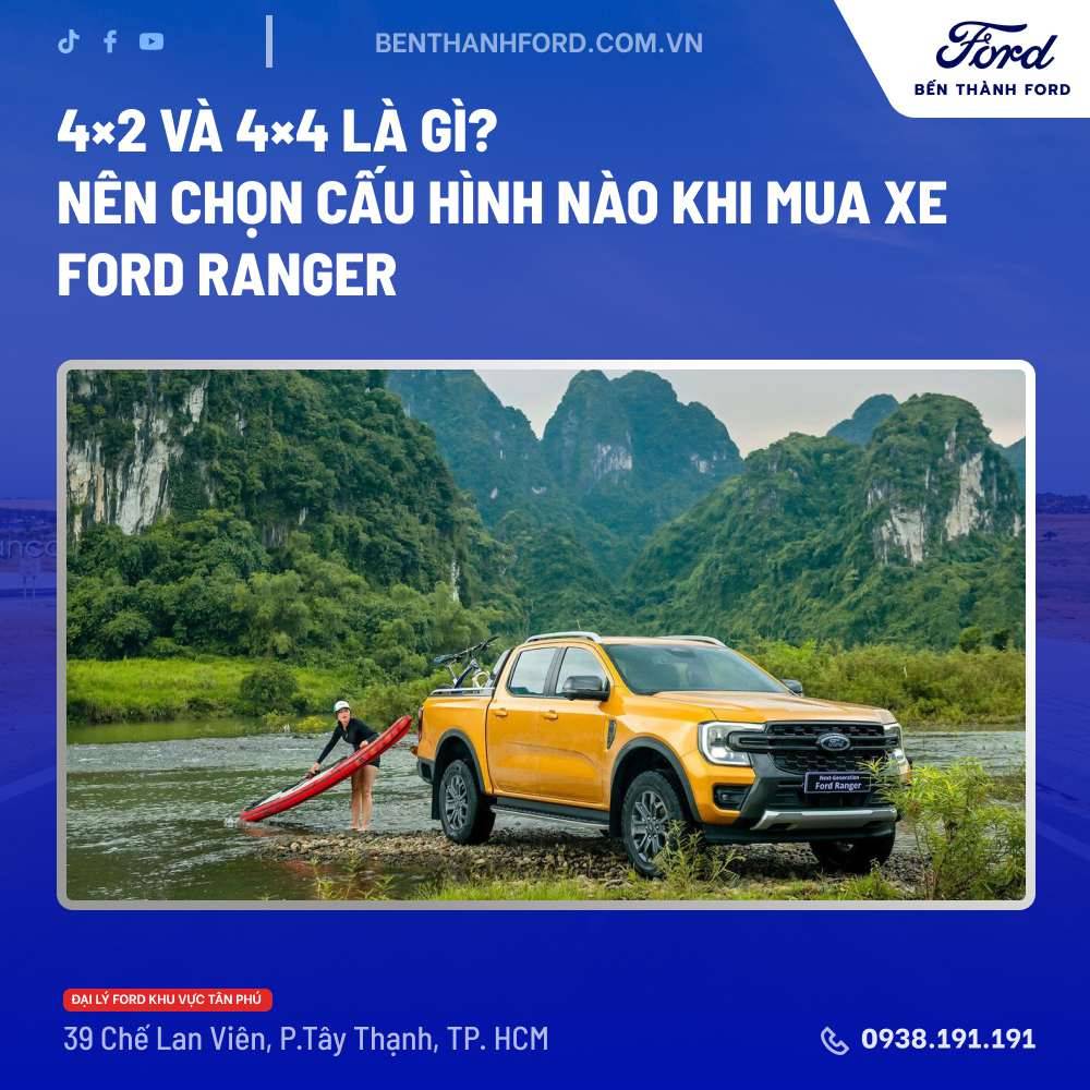 4x2 và 4x4 là hai cấu hình dẫn động trên Ford Ranger, khác nhau ở cách...