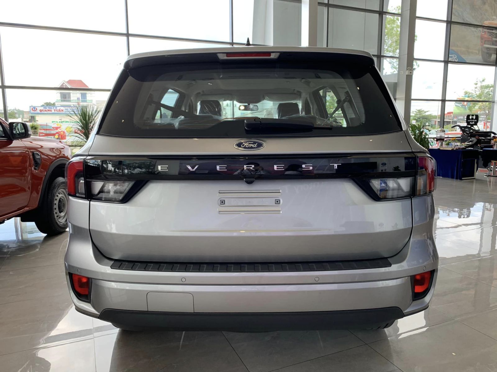 Trung tâm đuôi xe nổi bật với thanh ngang mạ crôm khắc chữ EVEREST chạy nối liền hai đèn hậu, vừa nhấn mạnh sự sang trọng vừa khẳng định bản sắc thương hiệu. Phía dưới, cản sau thiết kế khỏe khoắn, kết hợp ốp nhựa đen và chi tiết mạ bạc, mang lại cảm giác vững chắc và tăng khả năng chống trầy xước khi di chuyển trên địa hình phức tạp.