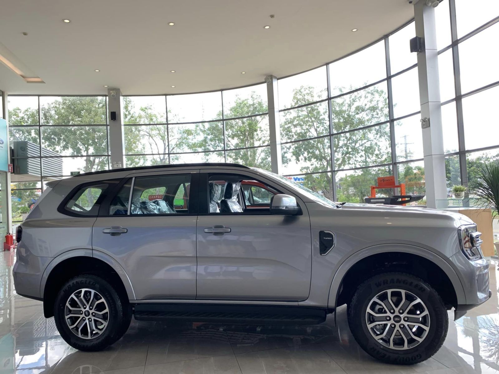 Nhìn từ bên hông, Ford Everest Ambiente 2.0L AT 4×2 gây ấn tượng với dáng SUV cao ráo, chắc khỏe và đầy đặn. Các đường gân dập nổi chạy dọc thân xe tạo cảm giác cơ bắp, liền mạch từ cụm đèn trước đến đèn hậu, làm tăng sự khí động học và phong cách thể thao.