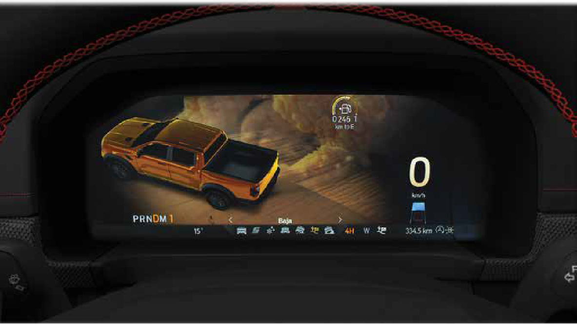Cụm đồng hồ kỹ thuật số 12.4 inch – Hiện đại, trực quan và đầy cảm hứng: Ford Ranger Raptor 2024 được trang bị cụm đồng hồ kỹ thuật số toàn phần kích thước 12.4 inch, thay thế cho bảng đồng hồ analog truyền thống. Thiết kế sắc nét, hiển thị trực quan và sống động giúp người lái làm chủ thông tin chỉ trong nháy mắt.