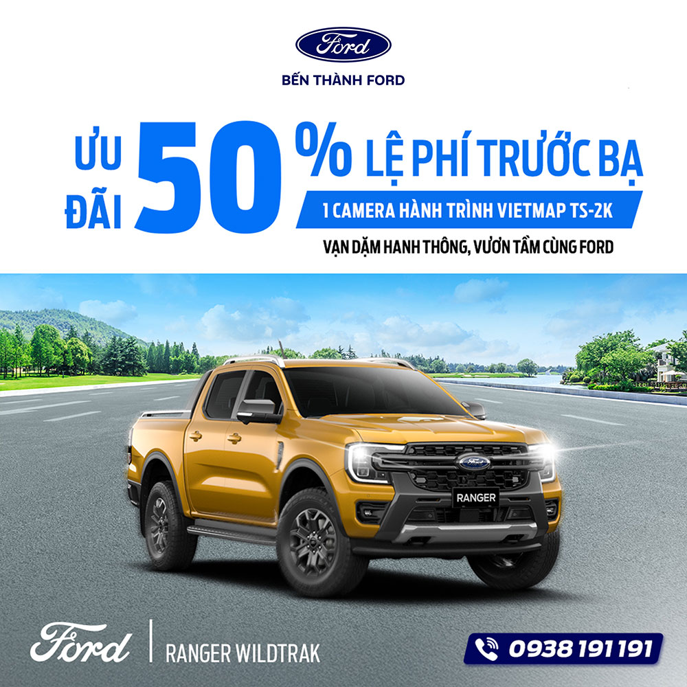 - Ford Ranger Wildtrak: Tặng ngay ưu đãi 50% lệ phí trước bạ và đính kèm 01 Camera hành trình Vietmap TS-2K cao cấp.